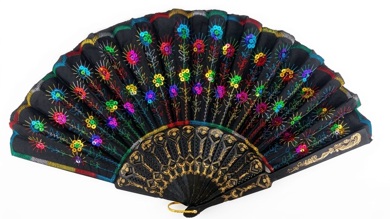 Abanico negro bordado con lentejuelas