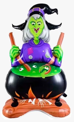 Globo metalizado halloween con base 1m silueta bruja c/caldero