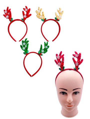 Promo 12 vinchas navidad reno c/lentejuelas